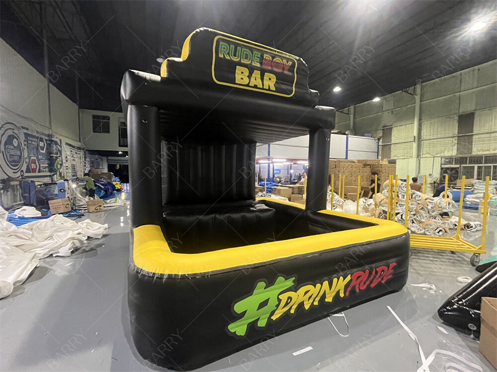 Esta barra de piscina inflável de pub, única em seu tipo, combina a durabilidade do tecido drop stitch DWF com um design divertido e de marca. Construída para eventos, festas e ativações de marca, é tanto uma piscina funcional quanto um bar móvel totalmente personalizado, tornando-a perfeita para reuniões de verão, festivais e campanhas promocionais. O exemplo mostrado apresenta a marca personalizada “Rude Boy Bar”, destacando a natureza totalmente personalizável deste inflável exclusivo.